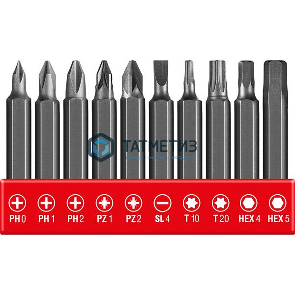 -Биты 50 мм, PH0, PH1, PH2, PZ1, PZ2, S4, T10, T20, HEX4, HEX5, 10 шт;