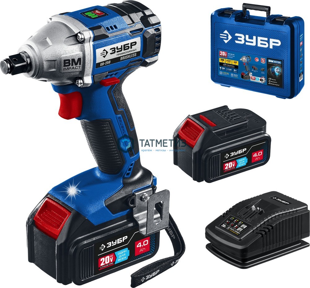 Гайковерт бесщеточный, 20В, 2 АКБ (4Ач), в кейсе, ЗУБР Профессионал