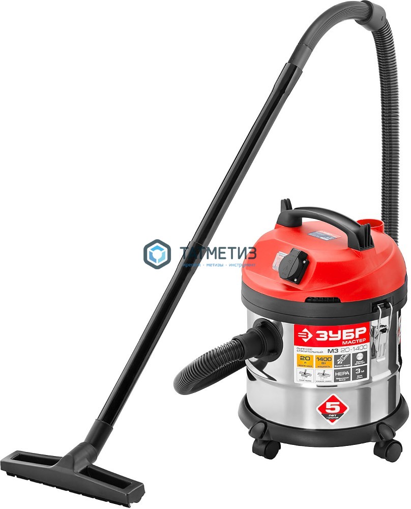 Пылесос строительный, 20 л, 1400 Вт, сух. и вл. уборка, корпус из нерж. стали, ЗУБР, модель М3-20